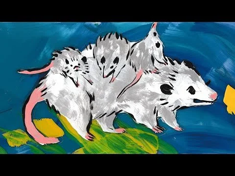 Made with excess latex paints from mural projects painted on duralar. Each frame was collaged and then scanned to form this animation.